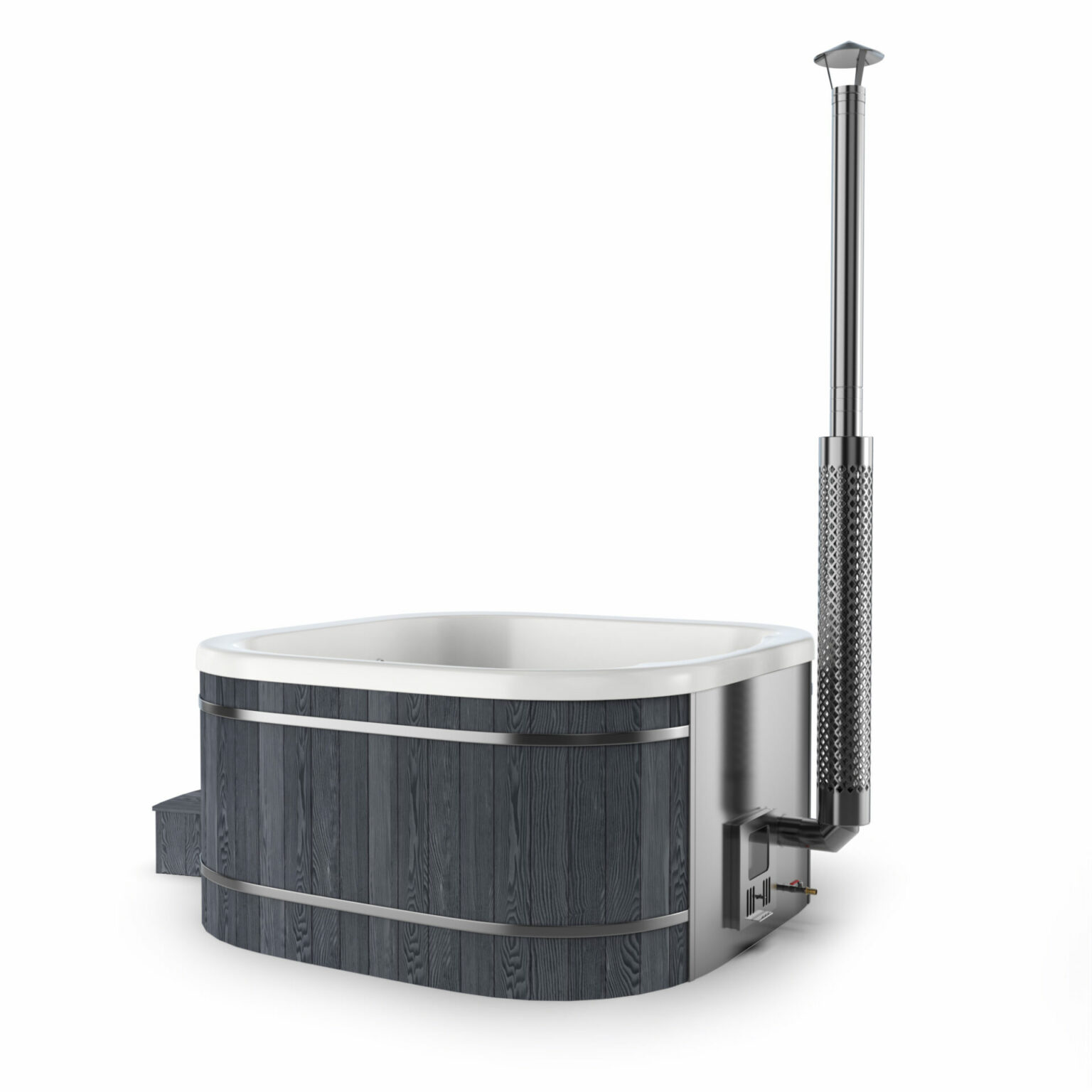 Enjoy comfort, elegance, and wood-fired simplicity in an ultra-spacious square tub built to withstand life’s ups and downs.